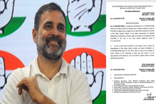 New Delhi, Aug 7 (IANS) Lok Sabha membership of Congress leader Rahul Gandhi was on Monday restored by the Lok Sabha Secretariat, three days after the Supreme Court stayed his conviction in a defamation case.