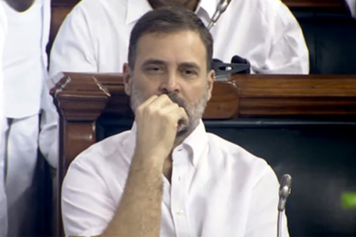 New Delhi, Aug 7 (IANS) Congress leader Rahul Gandhi, whose Lok Sabha membership was restored earlier in the day, arrived in Lok Sabha along with his mother Sonia Gandhi and several party members.