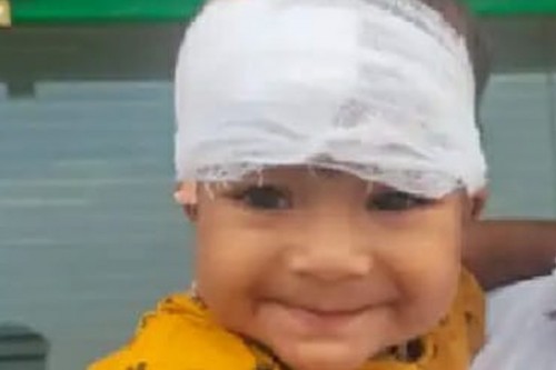 The picture of a smiling baby with a bandage over her head went viral on social media in the state. The baby, Keerthi, who suffered injury in the incident, is seen smiling even after suffering the injury. People are showering the baby with affection and appreciation.
