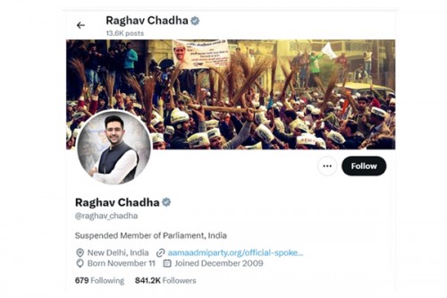 New Delhi, Aug 12 (IANS) Aam Aadmi Party (AAP) Rajya Sabha MP Raghav Chadha on Saturday changed his bio on X (formerly Twitter) to 'suspended MP' .