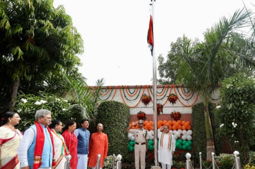 New Delhi, Aug 15 (IANS) BJP national president Jagat Prakash Nadda on Tuesday hoisted the Tricolour at the party headquarters here on the occasion of 77th Independence Day.