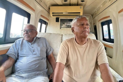 Lalu Prasad along with his JP movement friend Shivanand Tiwari visited the Marine Drive in a special Rath which was built on an SUV on Tuesday evening and interacted with the people. Both the leaders inspected the area and reviewed the work done by the road construction ministry held by Tejashwi Yadav.