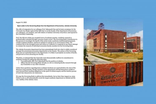 “The offer of resignation by our colleague Prof. Sabyasachi Das and its hasty acceptance by the University has deeply ruptured the faith that we in the faculty of the department of Economics, our colleagues, our students, and well-wishers of Ashoka University everywhere, had reposed in the University's leadership,” the Department wrote in the letter.