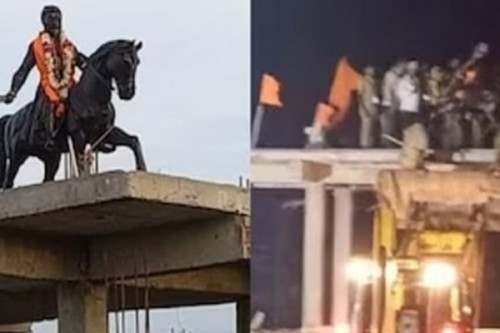 The BJP and Hindu organisations have declared that until the Shivaji statue is re-installed, the agitation will continue.