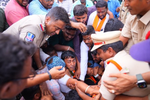 The police arrested a few leaders of BJP, including state spokesperson Rakesh Reddy and Warangal district president Rao Padma.
