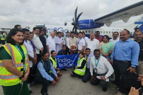 Patil, Yediyurappa, former minister K.S. Eshwarappa, MP B.Y. Raghavendra, MLA B.Y. Vijayendra, former minister and BJP MLA Araga Jnanendra also travelled in the first IndiGo flight from Bengaluru to Shivamogga.