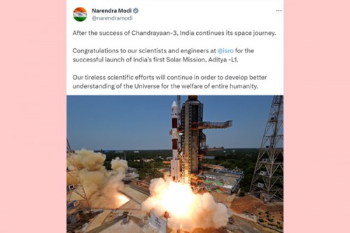 New Delhi, Sep 2 (IANS) Prime Minister Narendra Modi on Saturday congratulated the scientists at ISRO for the successful launch of India's solar mission Aditya-L1, saying the tireless scientific efforts will continue in order to develop better understanding of the Universe for the welfare of entire humanity.