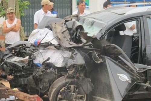 The impact of the crash was such that the car was reduced to a skeletal mangle. The accident took place near Mallapura in Chitradurga taluk. The four persons were killed on the spot and the other three were shifted to hospital.