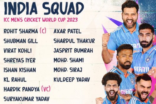 New Delhi, Sep 5 (IANS) India on Tuesday announced their final 15-man squad for the upcoming ODI World Cup.