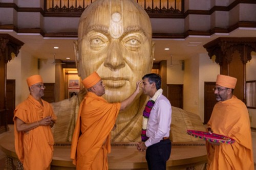 Elated on his visit to the temple, the UK Prime Minister said, "My wife and I were delighted to visit Swaminarayan Akshardham for darshan and puja this morning."