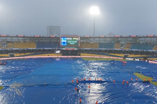 Colombo, Sep 11 (IANS) Heavy rainfall in Colombo delayed the start of the reserve day in the Super Four clash of the Asia Cup between India and Pakistan at the R Premadasa Stadium on Monday.
