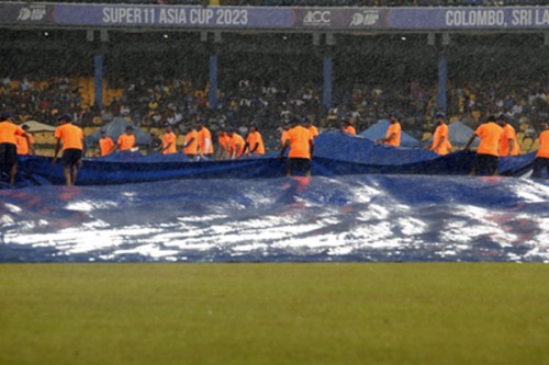 Colombo, Sep 14 (IANS) The ground is completely covered as things stand, and the toss has been delayed due to rain in the fifth game of the Super 4 stage of Asia Cup 2023 between Pakistan and Sri Lanka at R Premdasa Stadium, Colombo, here on Thursday.