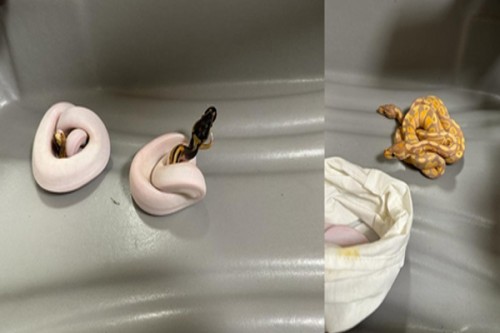 Wildlife officials and Tamil Nadu forest department officials reached the airport and further inquiry revealed that the snakes were ball pythons, while the squirrel was of African origin.