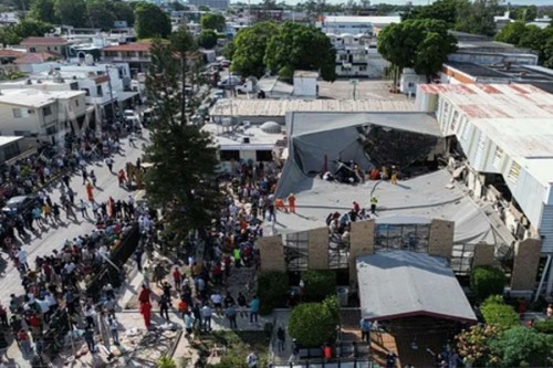 According to police, around 100 people were at a mass at the time of the collapse. Local media reported it was a baptism.