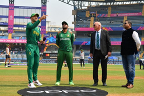Mumbai, Oct 24 (IANS) South Africa won the toss and elected to bat first against Bangladesh in their ICC Men's Cricket World Cup match at the Wankhede Stadium on Tuesday.