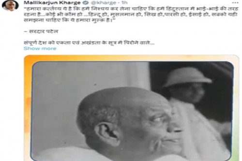 Kharge in a post on X, said, "'Our duty is that we should decide that we have to live like brothers in India... Be it any community... Hindu, Muslim, Sikh, Parsi, Christian, everyone should understand that this is our This is the country,' Sardar Patel."