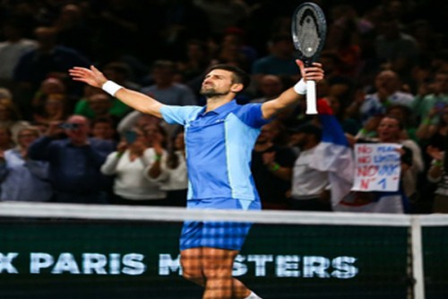 Paris, Nov 5 (IANS) Novak Djokovic maintained his perfect record in semifinals at the Paris Masters as the world No. 1 prevailed 5-7, 7-6(7-3), 7-5 against the fifth-seeded Andrey Rublev to move within one win of a record-extending seventh title at the ATP Masters 1000.