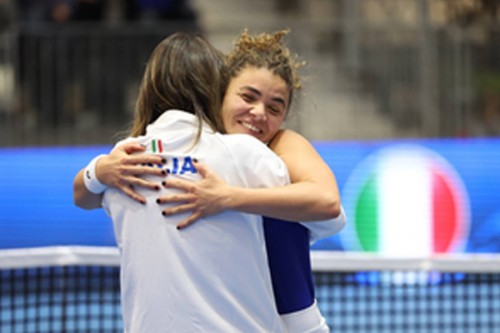 Seville, Nov 10 (IANS) Italy became the first team to reach the semifinals of the Billie Jean King Cup on Thursday after beating Germany 3-0 in their second group match.