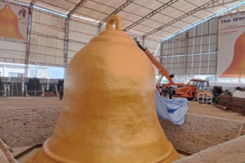 The bell weighing 79,000 kg was created by Devendra Arya by setting up a temporary factory on the riverfront.