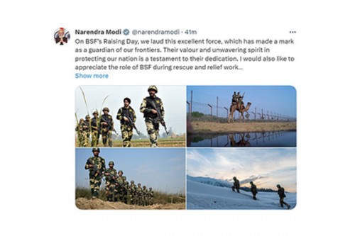 In a post on X, Modi, who is in the UAE to attend the COP28 meeting said, "On BSF's Raising Day, we laud this excellent force, which has made a mark as a guardian of our frontiers."