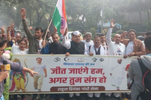 At the party headquarters here, party workers and supporters started gathering, holding placards and raising slogans.