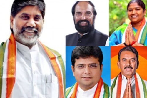 Vikramarka and Damodar Rajanarasimha took the oath in English while other members of the Cabinet took in Telugu.