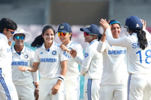 Navi Mumbai, Dec 15 (IANS) Restricted to 428 in their first innings after starting on overnight 410/7, India Women came back strongly to claim two early wickets as England Women reached 67/2 in 16 overs at lunch on the second day of the four-day one-off Test at the DY Patil Stadium here on Friday.