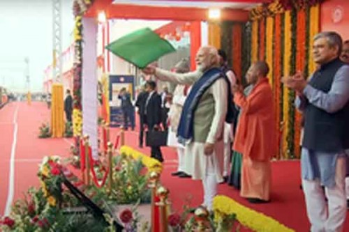 The Prime Minister held a roadshow while enroute to the railway station. Thousands of people had lined up along the route, showering rose petals on the convoy and cheering the Prime Minister.