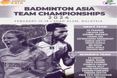 New Delhi, Jan 9 (IANS) Two-time Olympic medallist PV Sindhu and World No. 8 Prannoy HS will spearhead a strong Indian squad at the Badminton Asia Team Championships 2024 slated to be held in Shah Alam, Malaysia from February 13-19.