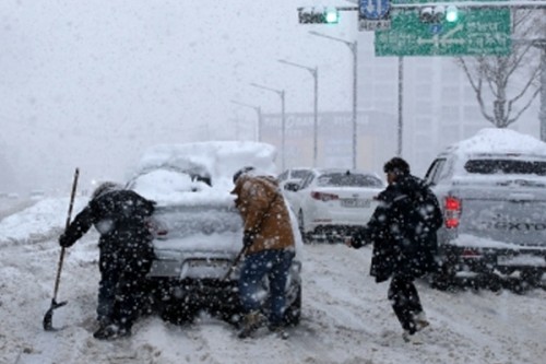 During the evening rush hour, snow of 1 to 3 cm per hour is expected to pile up across the capital, according to the Korea Meteorological Administration (KMA) , warning of caution against heavy snowfall at times.