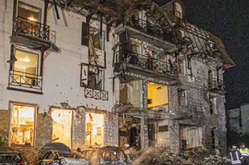 Kiev, Jan 11 (IANS) Two Russian rockets hit a hotel in the second largest Ukrainian city of Kharkiv, partially damaging the structure, while also injuring 10 people, the country's State Emergency Service (SES) said on Thursday.