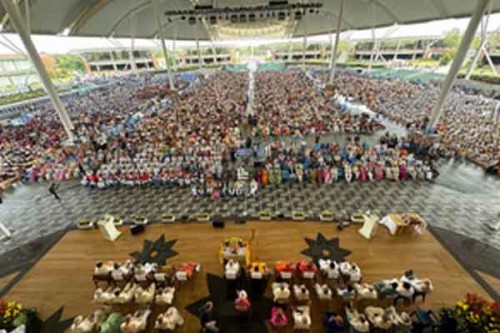 The setting of the press conference, the Kanha Shanti Bhavan complex, houses the world's largest meditation hall and serves as the global headquarters for Heartfulness.