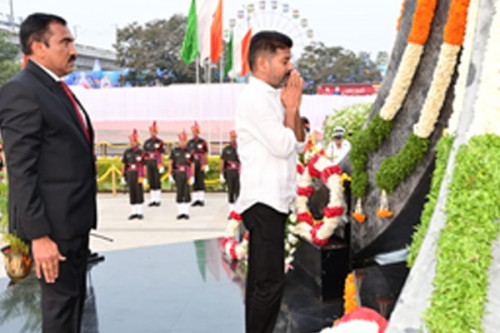 Hyderabad, Jan 26 (IANS) Telangana Chief Minister A. Revanth Reddy paid tributes to martyrs on the Republic Day.
