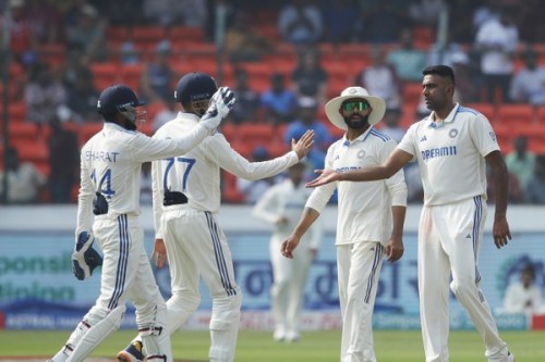 But Ashwin eventually got the right-handed Crawley out by drifting in one from round the wicket and took the outside edge on his forward defence to Rohit Sharma at slip, ending the 45-run opening stand. From the other end, Duckett unfurled his sweeps to superb effect, taking three fours off Ashwin and Axar.