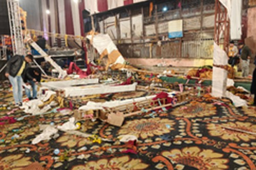New Delhi, Jan 28 (IANS) In a tragic incident, a 45-year-old woman died while 17 others were injured after a 'kirtan' stage collapsed in southeast Delhi’s Kalkaji temple, an official said on Sunday.