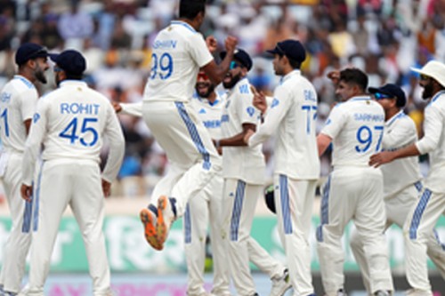 Brief Scores: India 307-10 and 192-5 beat England 353-10 and 145-10 by 5 wickets.