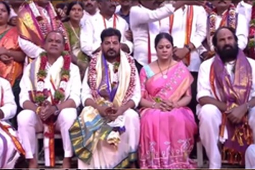 He was accompanied by Deputy Chief Minister Mallu Bhatti Vikramarka, ministers Uttam Kumar Reddy, Komatireddy Venkat Reddy, Konda Surekha and some MLAs.
