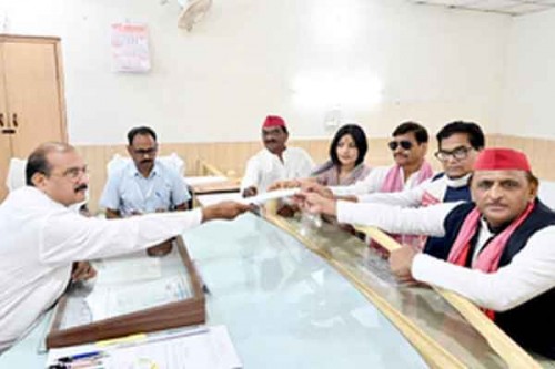 Senior party leader Shivpal Yadav and Prof Ram Gopal Yadav also accompanied Dimple for her nomination.