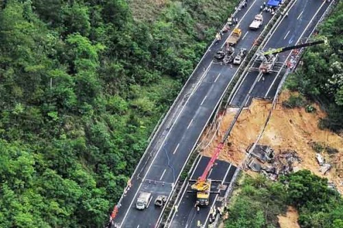 Chinese media had previously reported 24 deaths. The collapse of an 18-meter-long section of road near the city of Meizhou on the Meizhou-Dabu Expressway occurred after several days of heavy rain in the area.
