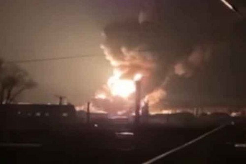 Moscow, May 10 (IANS) A fire broke out at an oil refinery in Russia's Kaluga region after the crash of a Ukrainian drone, local emergency services said on Friday.