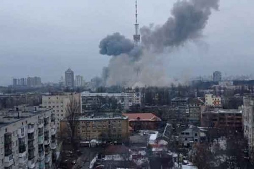 According to images from the scene, a large fire also broke out at a petrol station after it was hit.