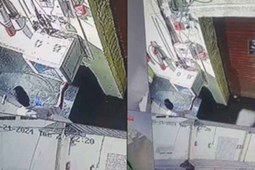 He walked right up to the warehouse shutter and tried to smash the CCTV cameras installed there, but was detected by Lanke's workers.