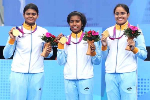 Shanghai, May 25 (IANS) Jyothi Surekha Vennam, Parneet Kaur and Aditi Swami have won their third successive gold medal for India at the Archery World Championship beating Turkey 232-226 in a lopsided compound women’s team final.