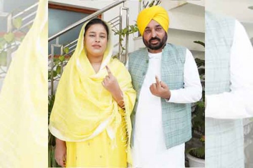 Chandigarh, June 1 (IANS) Punjab Chief Minister Bhagwant Mann and his wife, Gurpreet Kaur, cast their votes on Saturday at a polling booth in the Sangrur Lok Sabha constituency, and appealed to people to vote in large numbers.