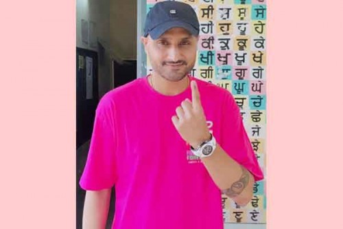 Chandigarh, June 1 (IANS) Former Indian cricketer and Aam Aadmi Party (AAP) Rajya Sabha MP Harbhajan Singh on Saturday cast his vote at a polling booth in his hometown Jalandhar in Punjab.