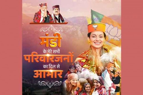Mandi, June 4 (IANS) Actress Kangana Ranaut, who is the BJP candidate from the Mandi Lok Sabha seat in Himachal Pradesh, has expressed her "heartfelt gratitude" over her impending win at the 2024 Lok Sabha Elections.