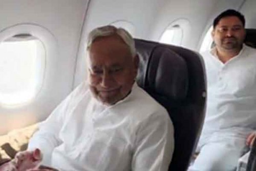 Both the leaders were seen on one flight of Vistara Airlines. Tejashwi Yadav was sitting just behind Nitish Kumar on the flight. The flight took off from Patna at 10:45 a.m.
