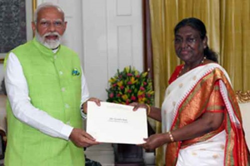 New Delhi, June 5 (IANS) Prime Minister Narendra Modi met President Droupadi Murmu on Wednesday and tendered his resignation along with the Council of Ministers.