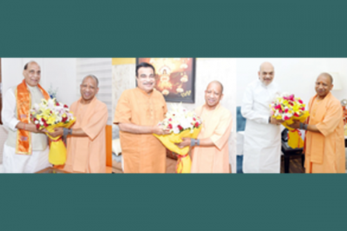 New Delhi, June 10 (IANS) Uttar Pradesh Chief Minister Yogi Adityanath on Monday paid courtesy visits to Union Ministers Rajnath Singh, Amit Shah, and Nitin Gadkari in New Delhi, congratulating them on their re-election.