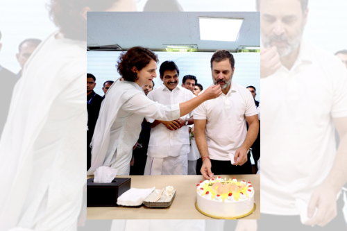 New Delhi/Hyderabad, June 19 (IANS) Senior leader Rahul Gandhi shared a lighter moment at the Congress headquarters on Wednesday as he cut his birthday cake, in presence of party President Mallikarjun Kharge, Priyanka Gandhi and other senior leaders.